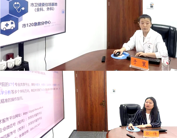 中心仪器设备管理科负责人张倩老师以《大仪资源开放共享 赋能临床科研创新》为主题,针对良乡医院的学科特点和实际需求,介绍了我校仪器设备和技术资源支撑的整体部署与共享举措,并对收费标准等关键问题做了专项解读。于寰主任以《北京良乡医院临床、教学、科研发展汇报》为主题,系统介绍了医院的基本情况、教学科研进展、医疗设备配置和诊疗环境建设等内容,并结合自身的科研经历,对我校开放共享宣讲一行,表示热烈的欢迎和感谢。